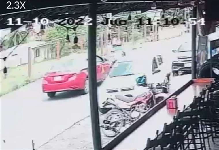 Como se aprecia en el video adjunto, el motociclista sale a la calle y gira a la derecha, sin percatarse que el taxista venía con vía. Este vehículo lo choca por detrás y lo levanta por el aire, hasta que cae varios metros más adelante.