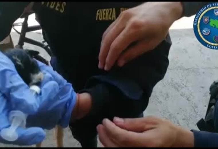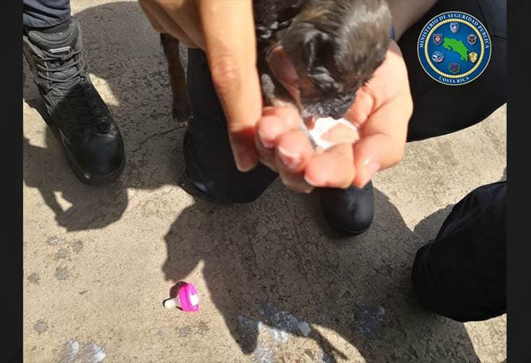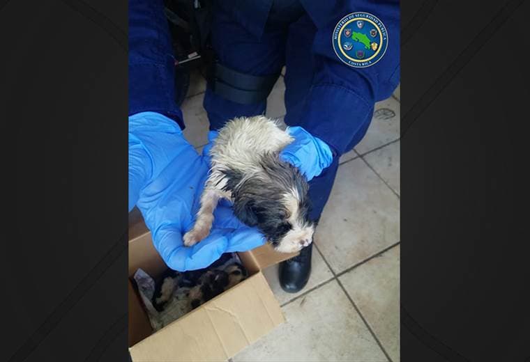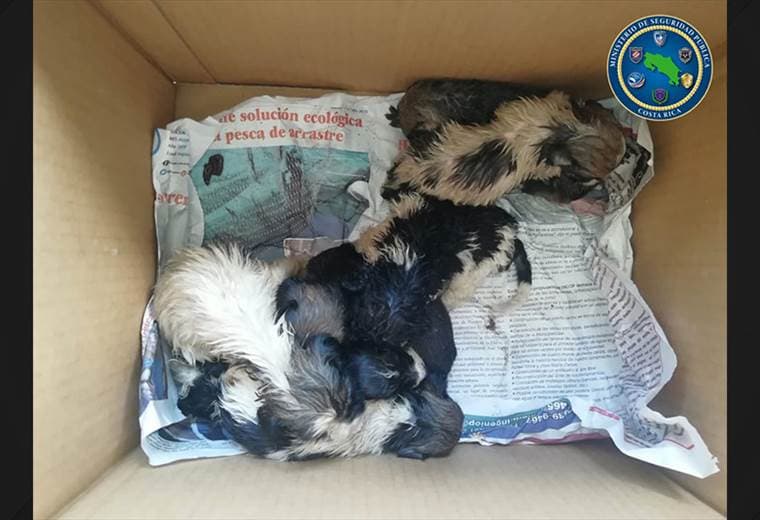 Un grupo de oficiales de la Fuerza Pública rescató a siete cachorritos que fueron abandonados en un caño en Barranca de Puntarenas.