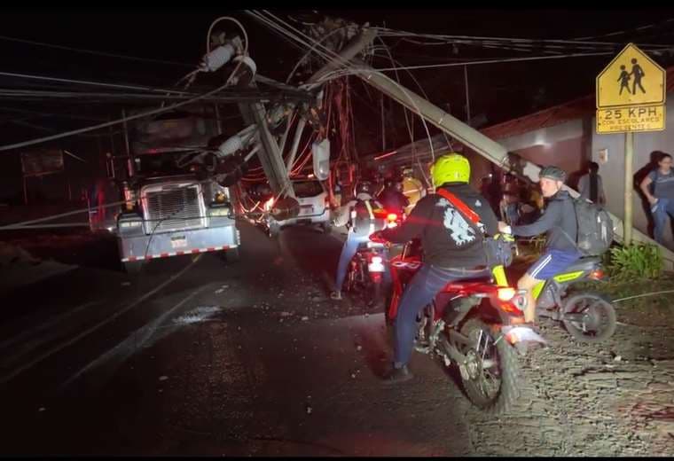 Un poste de electricidad cayó sobre varios vehículos en Alajuela, lo que ocasionó una emergencia y un gran congestionamiento vial.