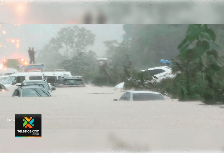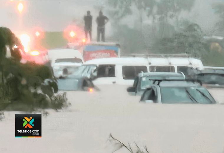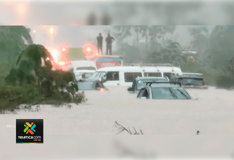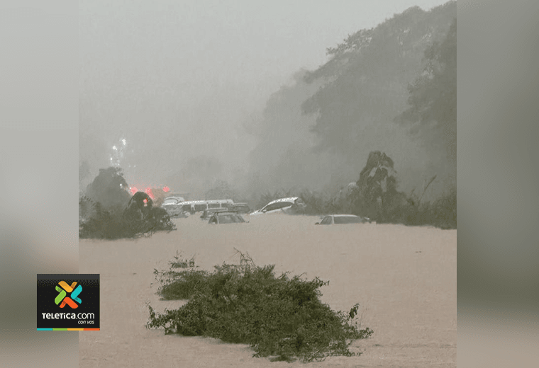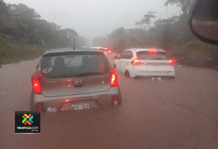 La principal ruta que comunica San José con Guanacaste se convirtió en un río debido a las fuertes lluvias que cayeron la tarde de este sábado.