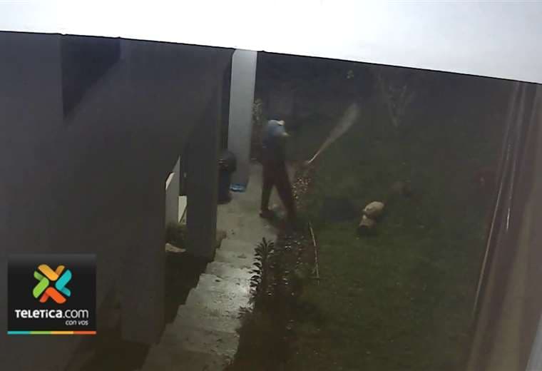 Un video captado por una cámara de seguridad muestra el momento en el que el sospechoso agrede con un palo al animal en varias ocasiones debido a que el can defecó en la terraza de la vivienda.