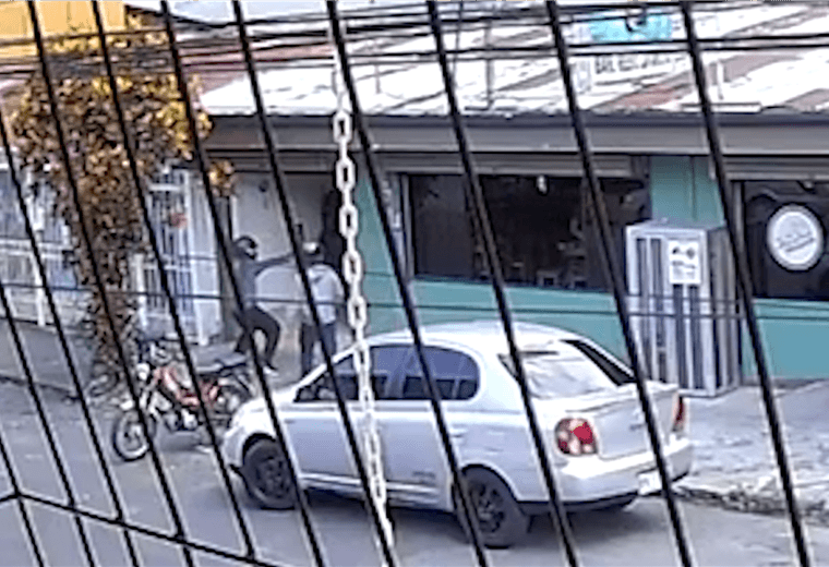 Como se aprecia en el video adjunto, los dos gatilleros llegaron con cascos y apuntaron a varios hombres, entraron a buscar a su objetivo, realizaron una detonación y luego salieron caminando para huir en una moto.