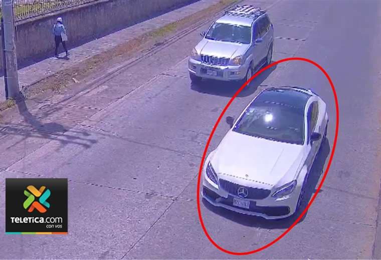 Un Mercedes Benz blanco con el techo negro sirvió como vehículo de escape para los aparentes responsables de un crimen ocurrido el 29 de setiembre de 2023, frente a la Escuela Rescate de Ujarrás, en Llanos de Santa Lucía de Paraíso, Cartago.