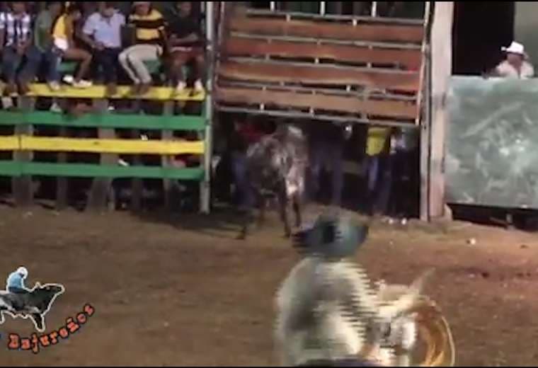 En varios videos grabados por los espectadores, se observa cuando el toro levanta una de las compuertas, se escapa por la barrera y la emprende contra las personas.