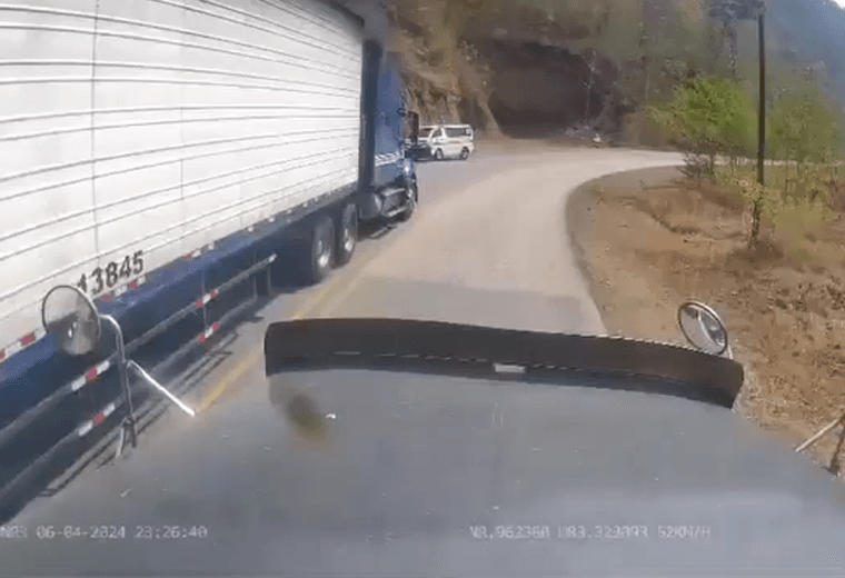 Un video difundido en redes sociales muestra el momento exacto en que el vehículo pesado adelanta otro camión invadiendo el carril contrario y se topa de frente con la ambulancia, en una zona prohibida de la carretera, donde se observa que hay doble línea amarilla y a pocos metros de una curva.