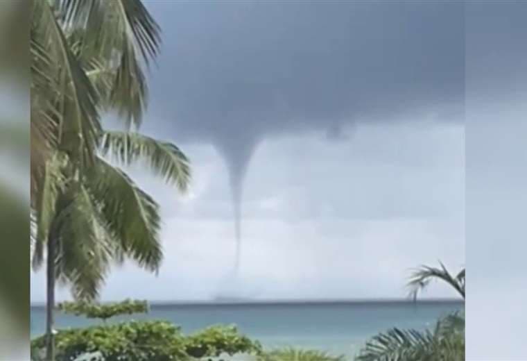 El fenómeno quedó registrado en video, donde se aprecia el momento exacto en que se forma el torbellino sobre el mar, con movimientos intensos y veloces.