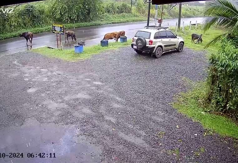 Como se aprecia en el video adjunto, un grupo de vacas se salió de un corral y comenzó a transitar cerca de la carretera.
