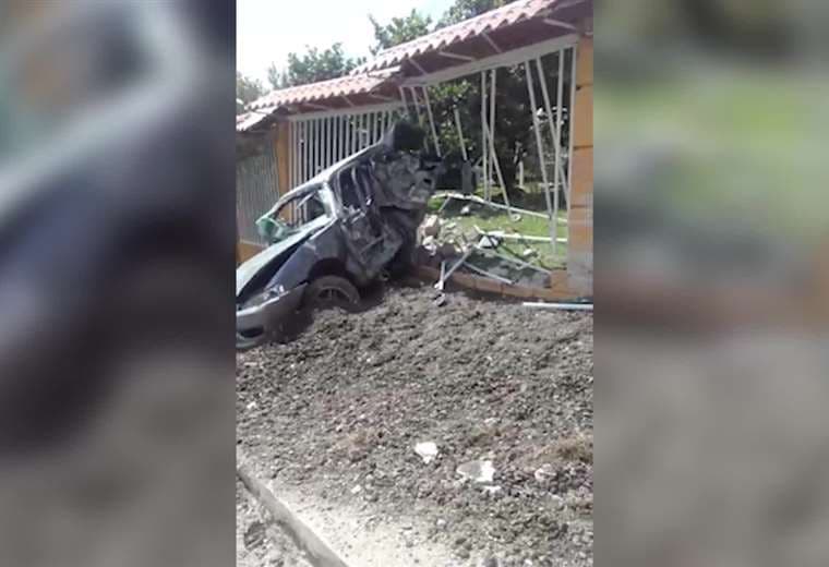 El camión, que acabó volcado en la vía pública, golpeó también un automóvil que terminó incrustado en el muro de una vivienda.