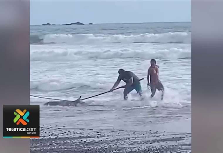 Un video muestra como varias personas arriesgan su vida al intentar atrapar un cocodrilo en playa Jacó.