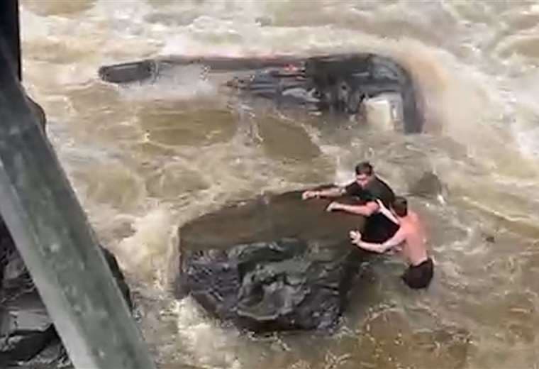 Videos muestran escape de dos hombres tras caída de carro a catarata La Paz
