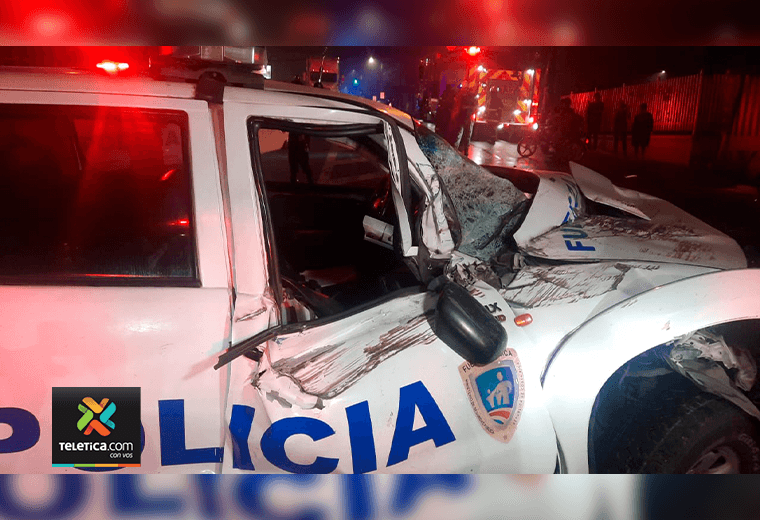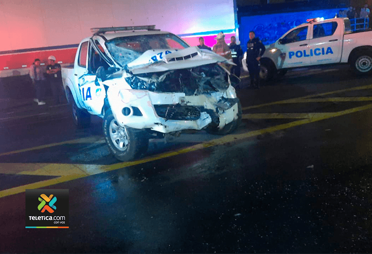 Violento choque de patrulla contra tráiler deja dos policias heridos en Pavas