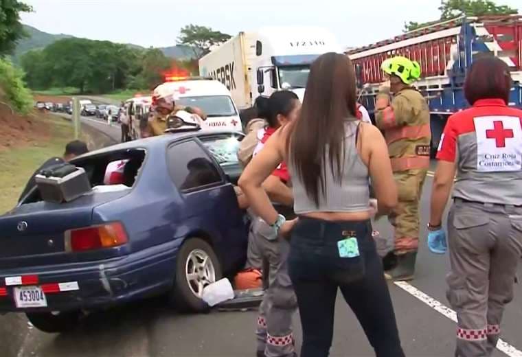 Testigos indicaron que, por razones que no están claras, el conductor del carro liviano, que viajaba en sentido San José-Caldera, pierde el control y comienza a zigzaguear y luego choca contra un camión ganadero, luego da círculos hasta quedar en la cuneta.