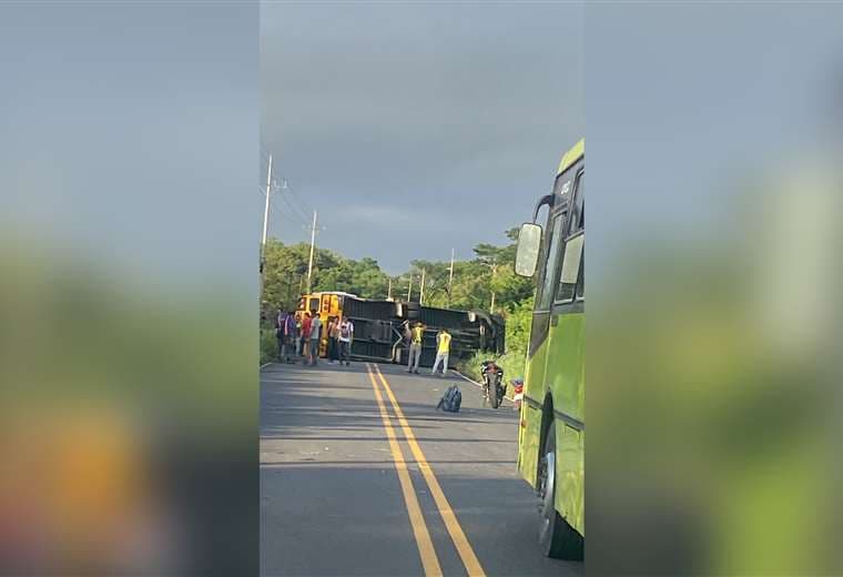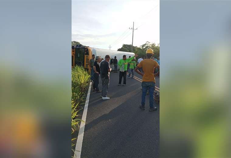 Un bus volcó este lunes, a eso de las 6:36 a. m., en la ruta que lleva hacia el hotel Four Seasons, en Guanacaste (ver fotos adjuntas).