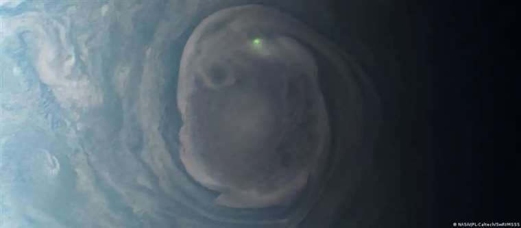 Satélite Juno de la NASA capta fantasmal rayo en Júpiter