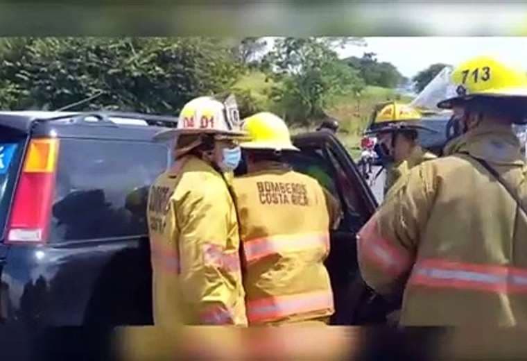 El cuerpo de Bomberos rescató a persona atrapada, tras la colisión entre tres vehículos en La Garita de Alajuela. Una persona más también resultó herida.