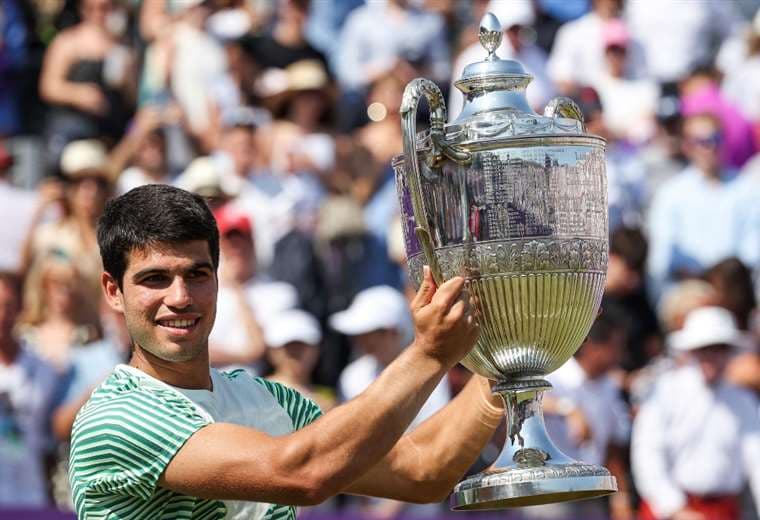 El tenista español Carlos Alcaraz ganó este domingo la final del torneo sobre hierba de Queen's, en Londres, contra el australiano Alex de Miñaur, al que se impuso por 6-4 y 6-4, con lo que recuperará el lunes el puesto de número uno de la clasificación ATP.