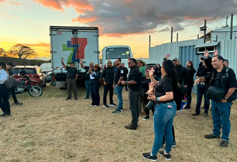 La presidenta de Televisora de Costa Rica, doña Olga Cozza de Picado, visitó al equipo que hace posible las transmisiones de Toros Teletica.